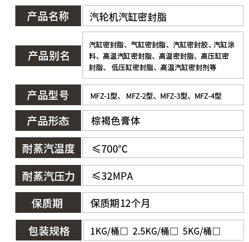 MFZ系列高性能汽輪機(jī)汽缸密封脂,各種不同規(guī)格機(jī)組的使用量,參照下表。常溫密封保存,保質(zhì)期為十二個(gè)月。